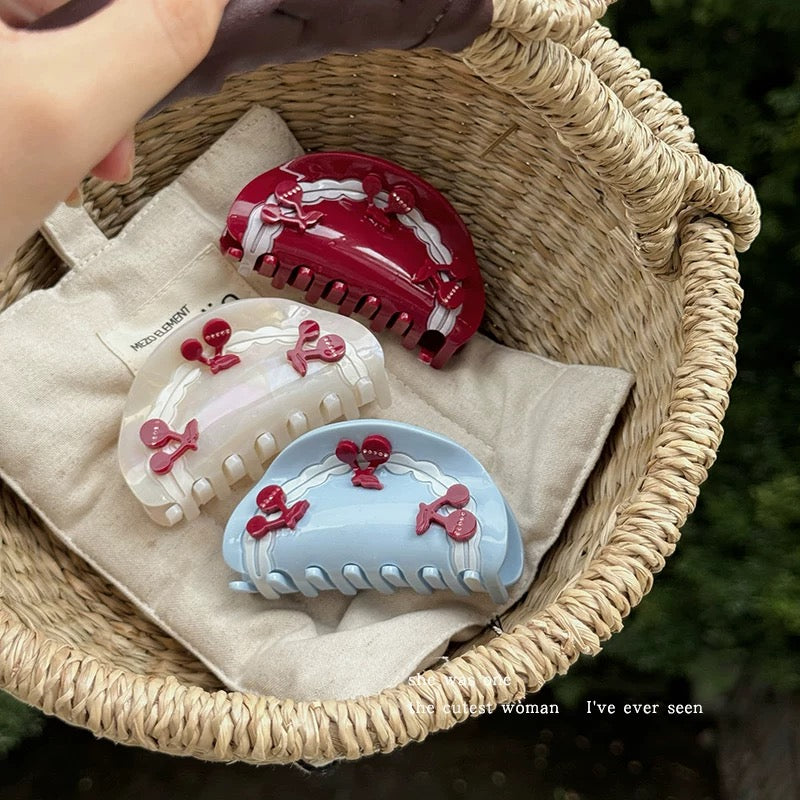 Playful and sweet, these cherry-themed hair claws come in dreamy red, ivory, and blue hues. Featuring raised cherry designs, they’re perfect for adding fun charm to everyday or Y2K-inspired styles.