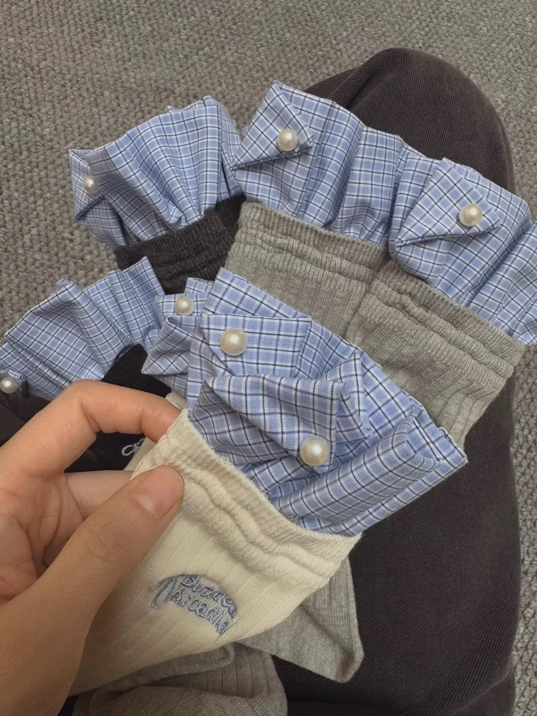 Pearl-Embellished Plaid Ruffle Socks (1 Pair)