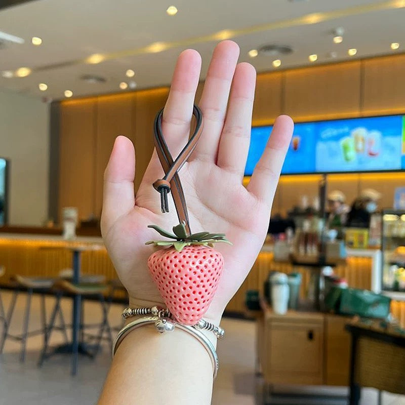 Sweeten your style with this hyper-realistic strawberry keychain necklace! Crafted with a glossy finish and paired with a faux leather strap, it’s both a fashion statement and a conversation starter. Whether worn as a necklace or used as a bag charm, this piece is perfect for fruit lovers and kawaii style fans.