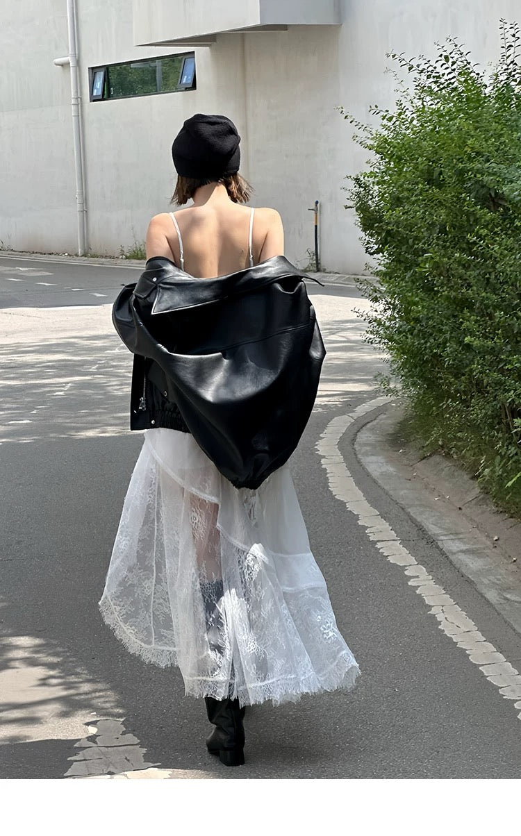 Embrace dramatic romance with this stunning white lace maxi dress featuring a high-low asymmetric hemline. This ethereal piece showcases delicate floral lace overlay throughout with an intentionally irregular hem that's shorter in front and flows longer in back, creating beautiful movement and visual drama. The semi-sheer lace creates depth and texture while a comfortable underlining ensures appropriate coverage. The elastic waistband provides easy wear while the flowing silhouette creates an elegant, romantic aesthetic. The intricate lace pattern features floral motifs and scalloped edges that add feminine detail throughout. This versatile dress works beautifully for creating both romantic and edgy looks, pairing perfectly with leather jackets for gothic romance or simple tank tops for ethereal bohemian styling. The asymmetric design adds contemporary edge to the classic lace maxi silhouette. Perfect for alternative weddings, gothic fashion lovers, music festivals, photoshoots, special events, or anyone who appreciates dramatic, romantic fashion with an unconventional twist.
