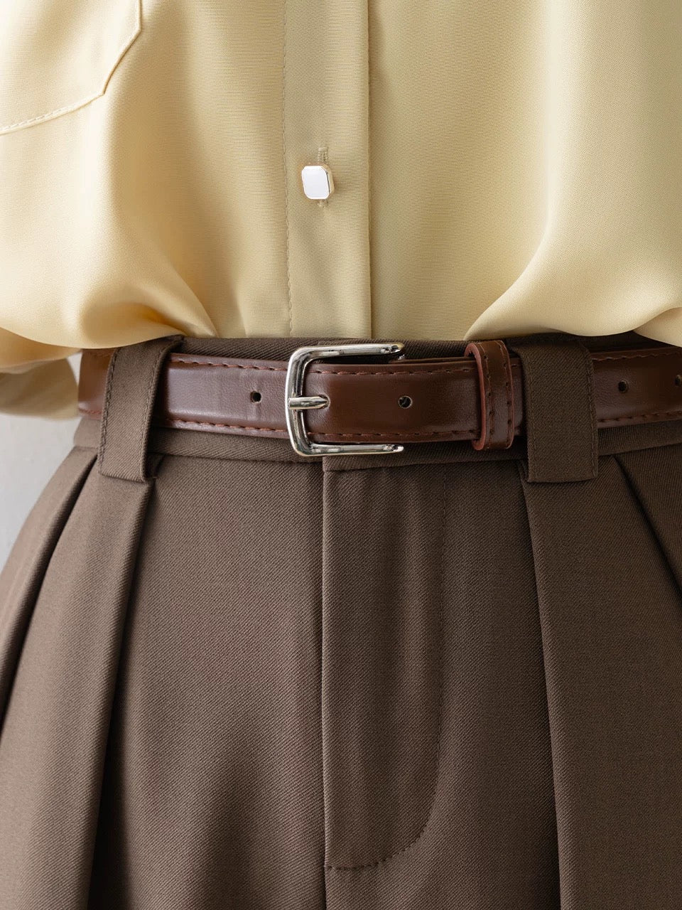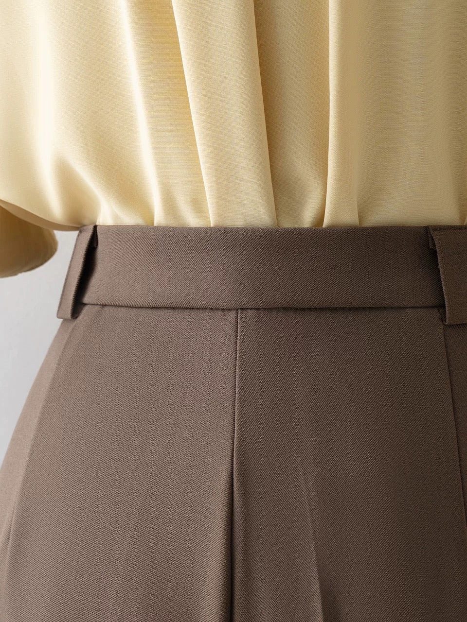These brown wide-leg trousers offer a flattering high-waist fit and a structured drape. Perfect for versatile styling, they pair beautifully with shirts, blouses, or knitwear for an elegant everyday look.